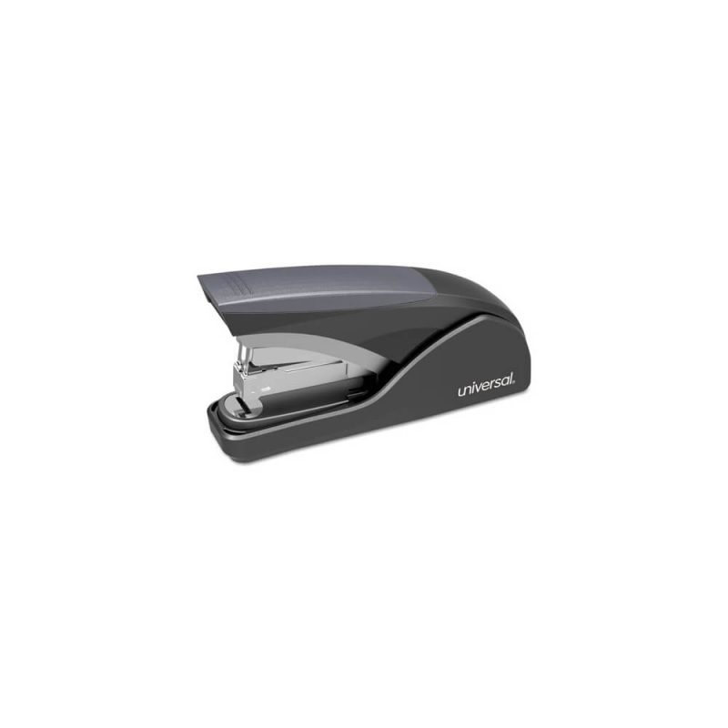 Deluxe Power Assist Flat-Clinch Full Strip Stapler, 25-Sheet Capacity, Black/Gray