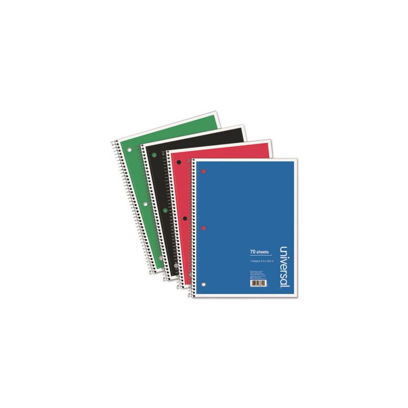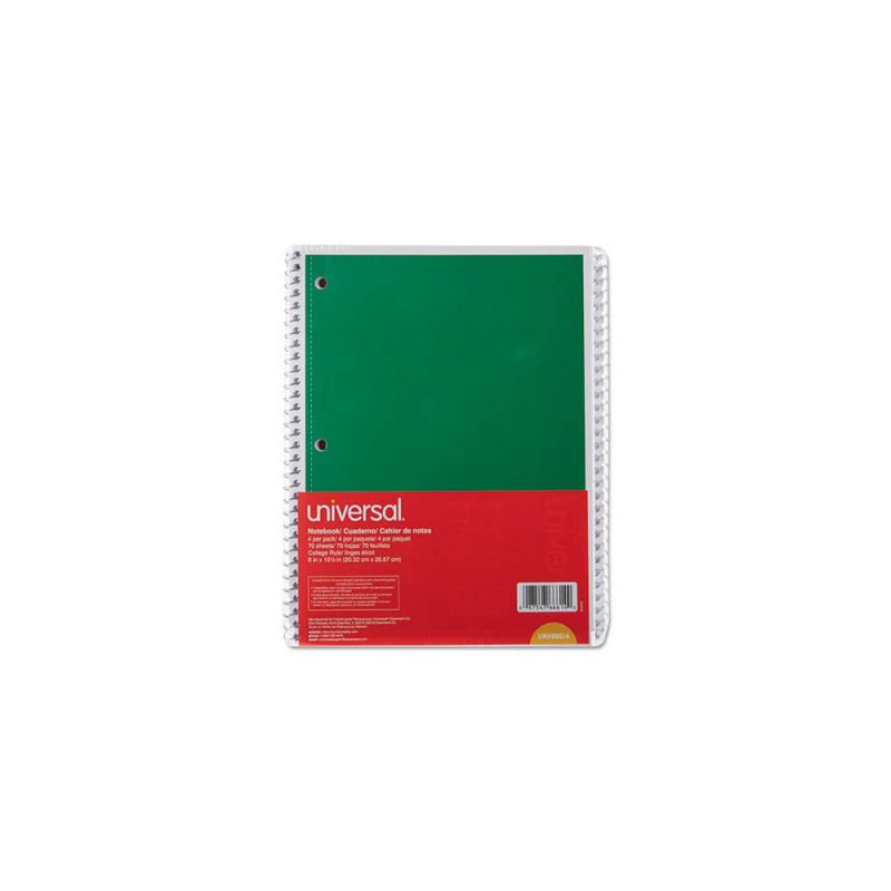 Wirebound Notebook, 1 Subject, Medium/College Rule, Assorted Covers, 10.5 x 8, 70 Sheets, 4/Pack