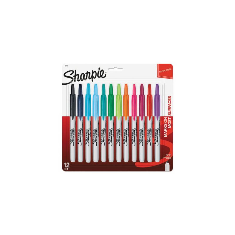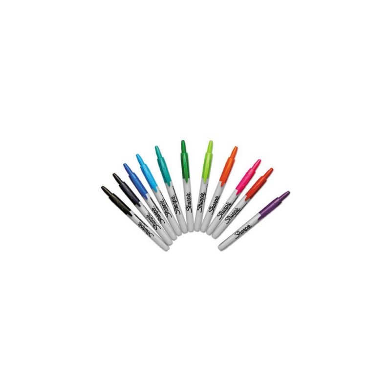 Retractable Permanent Marker, Fine Bullet Tip, Assorted Colors, 12/Set