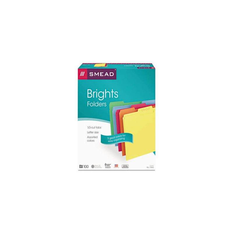 Colored File Folders, 1/3-Cut Tabs, Letter Size, Assorted, 100/Box