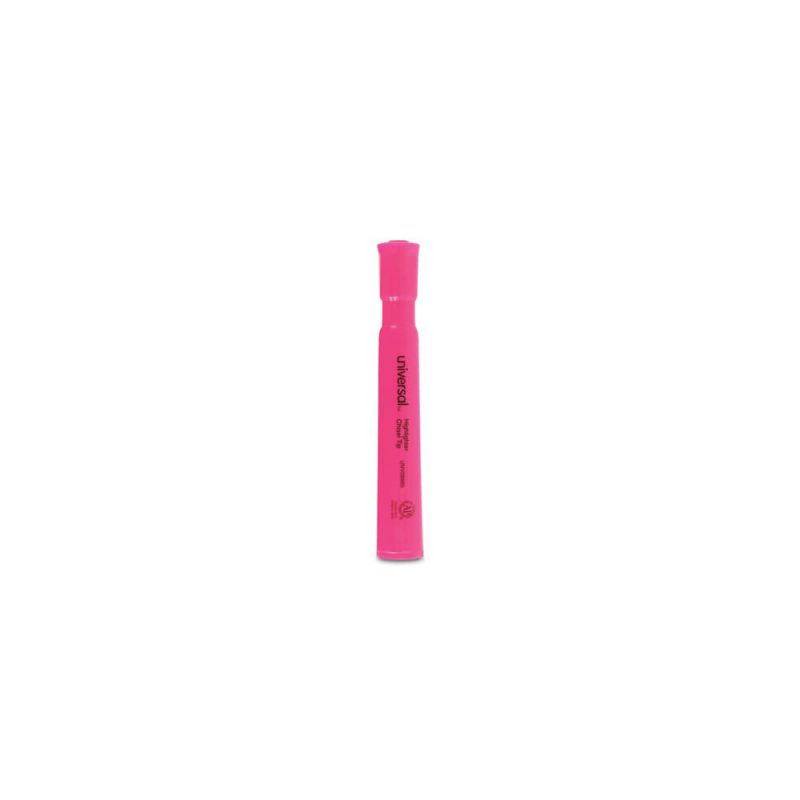 Desk Highlighters, Fluorescent Pink Ink, Chisel Tip, Pink Barrel, Dozen