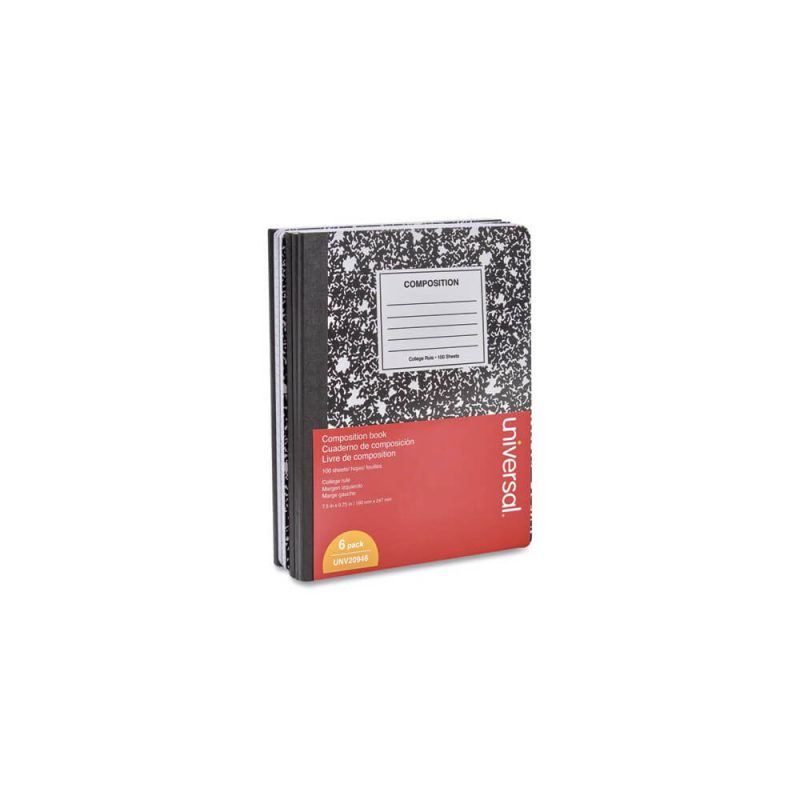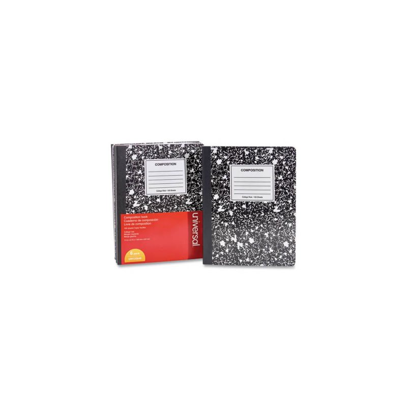 Composition Book, Medium/College Rule, Black Marble Cover, 9.75 x 7.5, 100 Sheets, 6/Pack