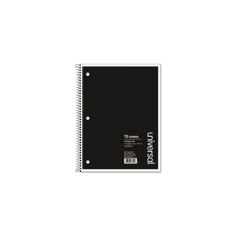 Wirebound Notebook, 1 Subject, Medium/College Rule, Black Cover, 10.5 x 8, 70 Sheets