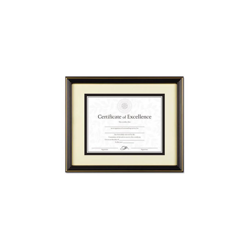 Gold-Trimmed Document Frame, Wood, 11 x 14 Matted to 8.5 x 11, Black