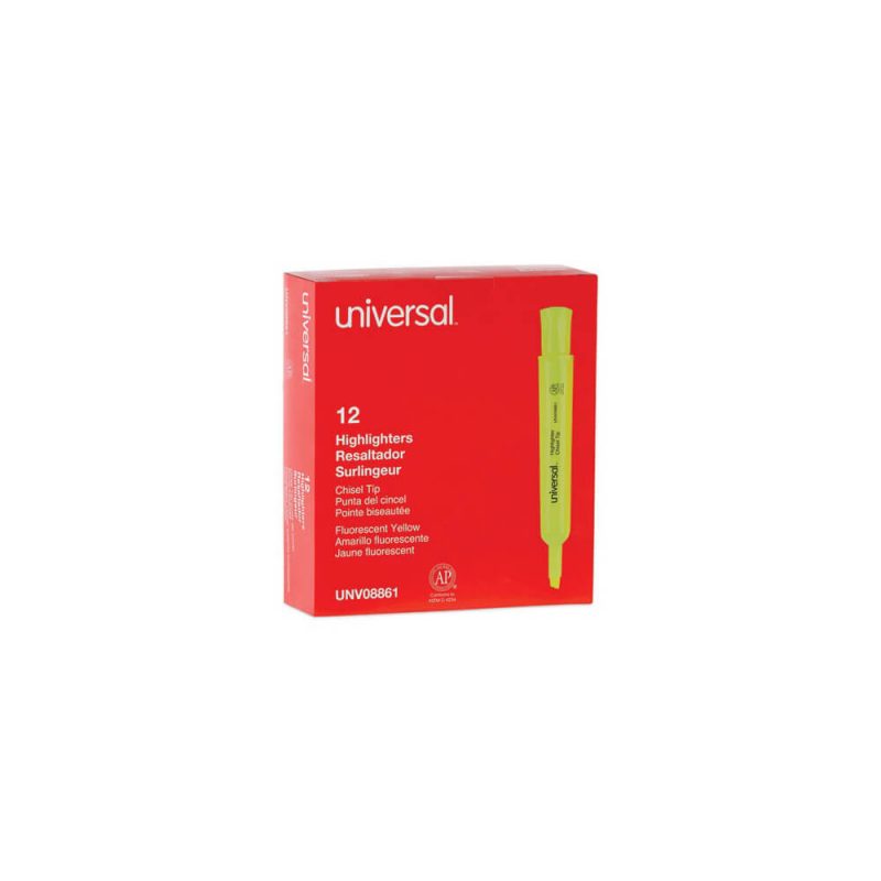 Desk Highlighters, Fluorescent Yellow Ink, Chisel Tip, Yellow Barrel, Dozen