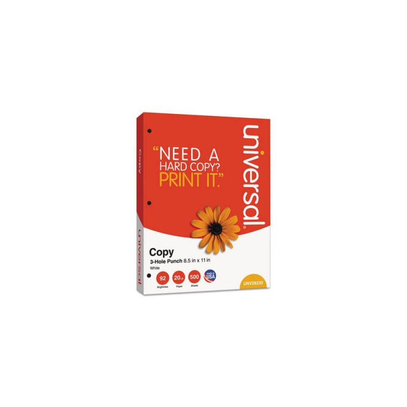 Copy Paper, 92 Bright, 3-Hole, 20 lb, 8.5 x 11, White, 500 Sheets/Ream, 10 Reams/Carton