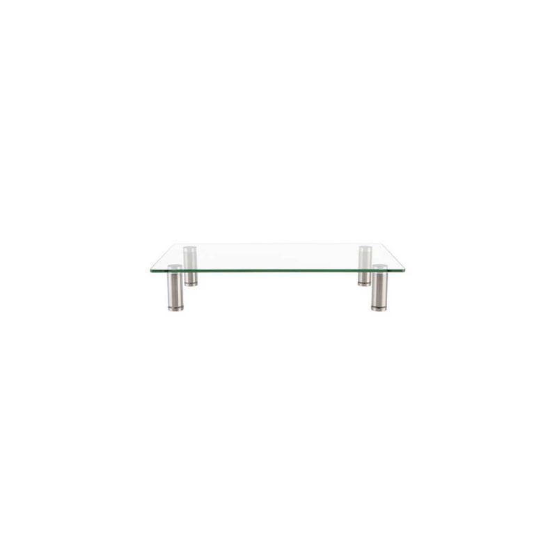 Adjustable Tempered Glass Monitor Riser, 15.75″ x 9.5″ x 3″ to 3.5″, Clear/Silver, Supports 44 lbs
