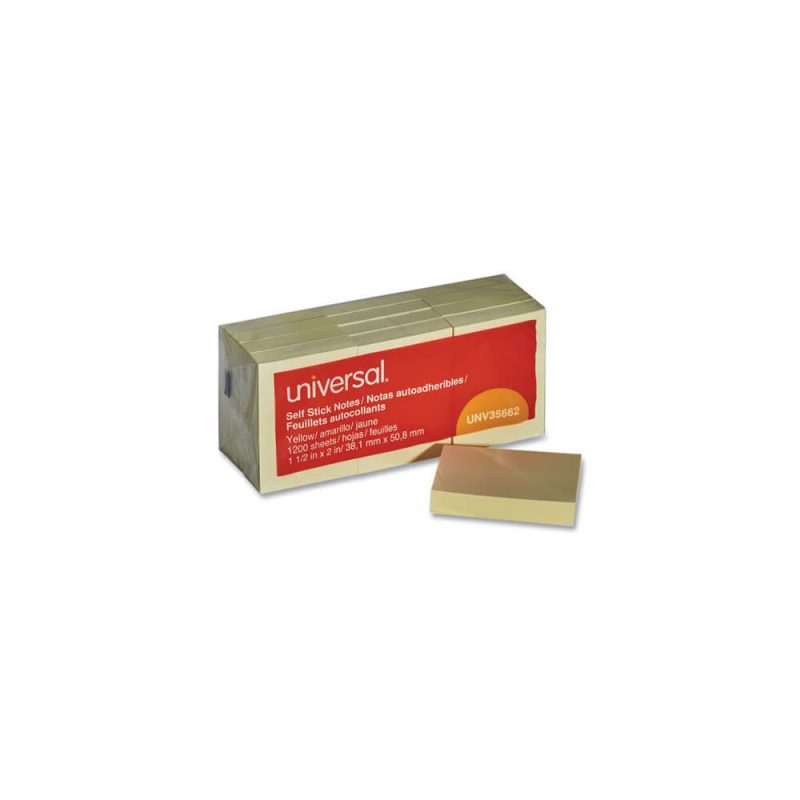 Self-Stick Note Pads, 1 1/2 x 2, Yellow, 12 100-Sheet/Pack