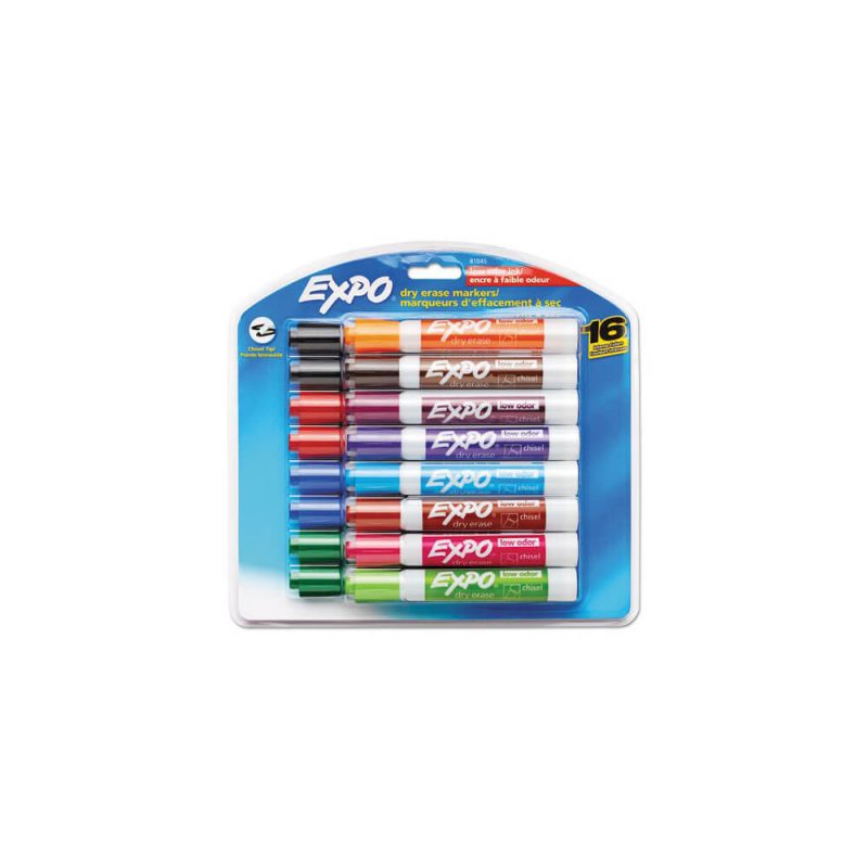 Low-Odor Dry-Erase Marker, Broad Chisel Tip, Assorted Colors, 16/Set