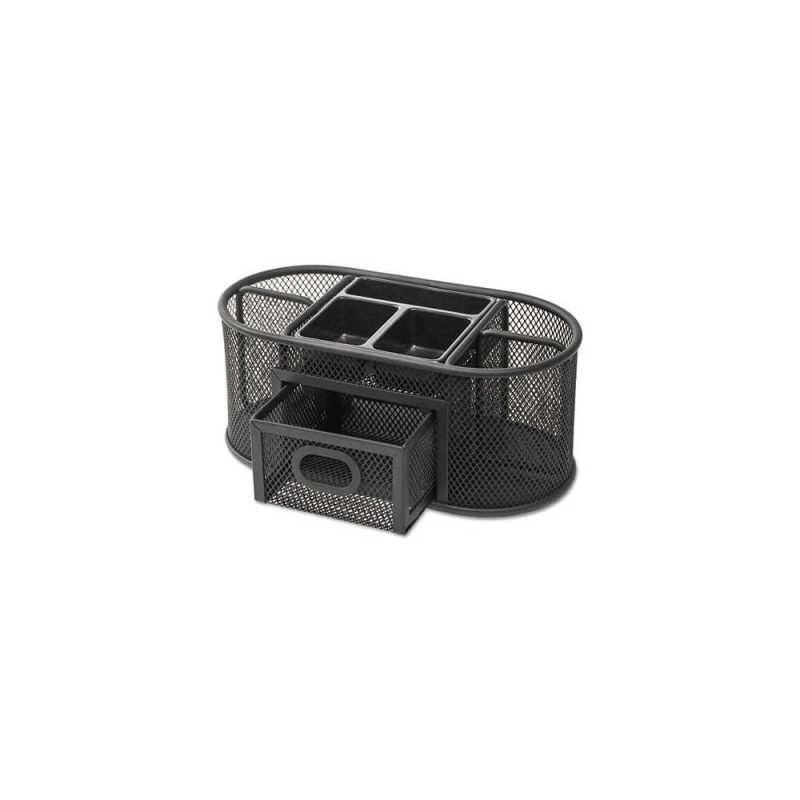 Metal Mesh Oval Desktop Organizer, 9 3/8 x 4 x 4 7/8, Black