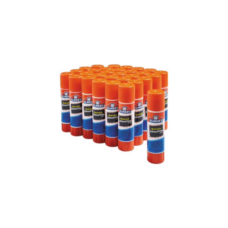 Washable School Glue Sticks, 0.24 oz, Applies and Dries Clear, 30/Box