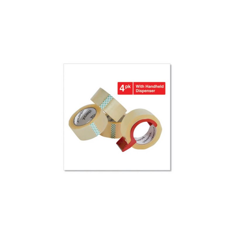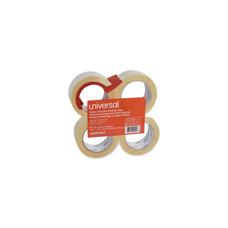 Heavy-Duty Box Sealing Tape with Dispenser, 3″ Core, 1.88″ x 60 yds, Clear, 4/Box