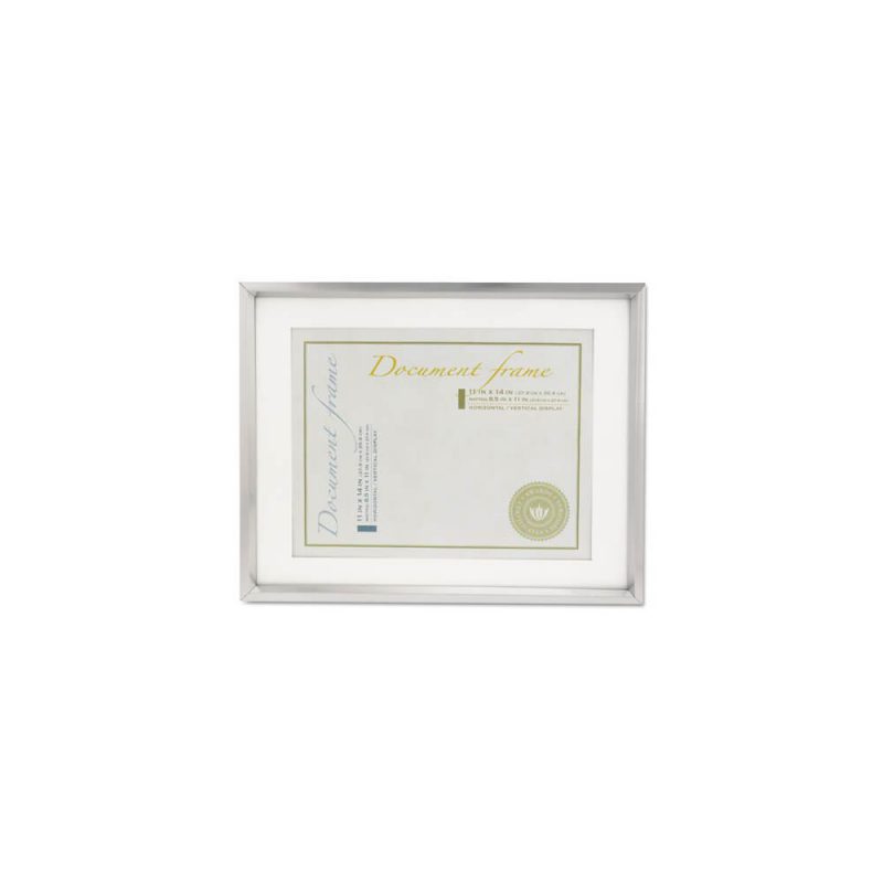 Plastic Document Frame with Mat, 11 x 14 and 8 1/2 x 11 Inserts, Metallic Silver
