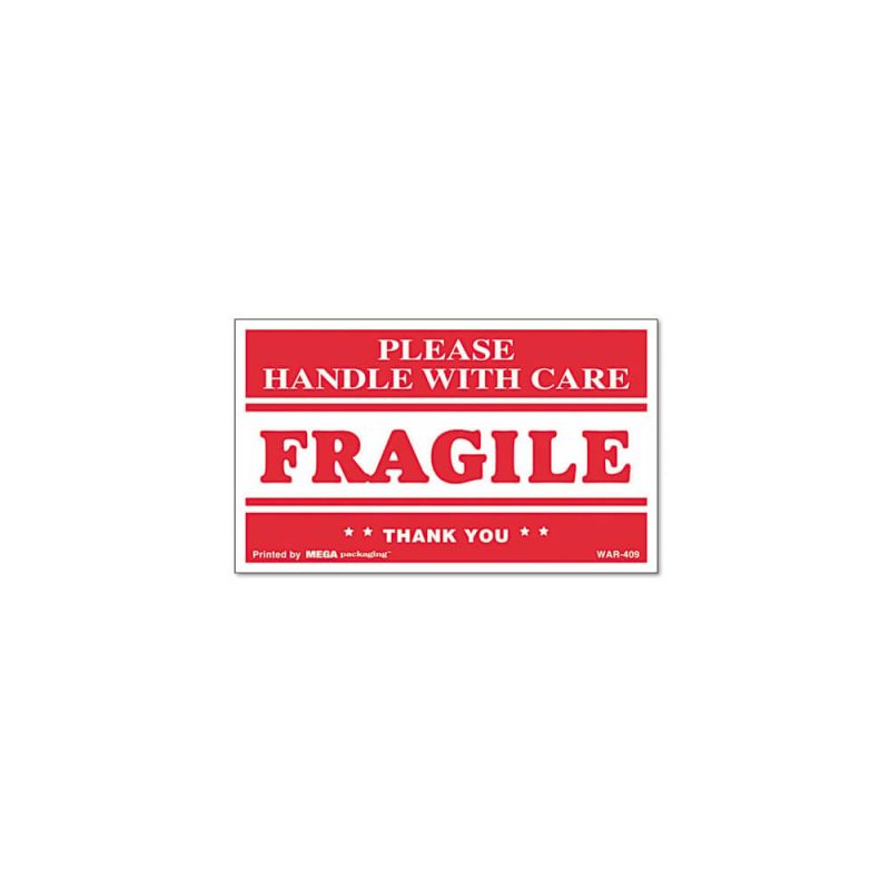 Printed Message Self-Adhesive Shipping Labels, FRAGILE Handle with Care, 3 x 5, Red/Clear, 500/Roll