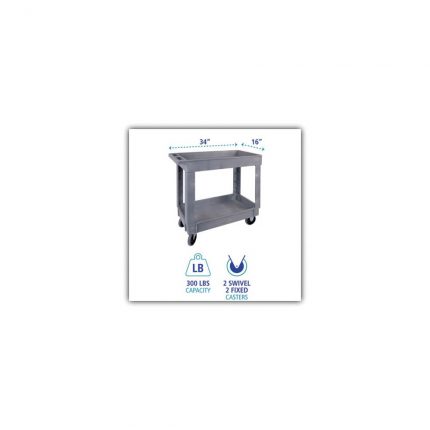 Utility Cart, Two-Shelf, 16w x 34d, Swivel Casters, Resin, Gray