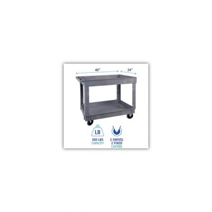 Utility Cart, Two-Shelf, Plastic Resin, 24w x 40d, Gray