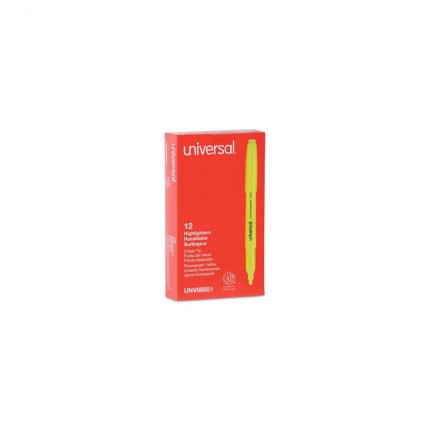 Pocket Highlighters, Fluorescent Yellow Ink, Chisel Tip, Yellow Barrel, Dozen