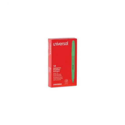 Pocket Highlighters, Fluorescent Green Ink, Chisel Tip, Green Barrel, Dozen