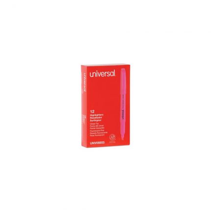 Pocket Highlighters, Fluorescent Pink Ink, Chisel Tip, Pink Barrel, Dozen