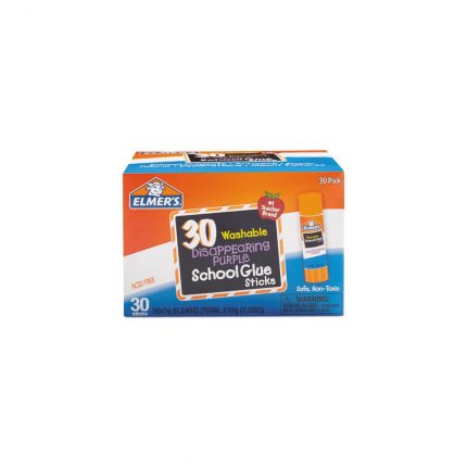 Washable School Glue Sticks, 0.24 oz, Applies Purple, Dries Clear, 30/Box