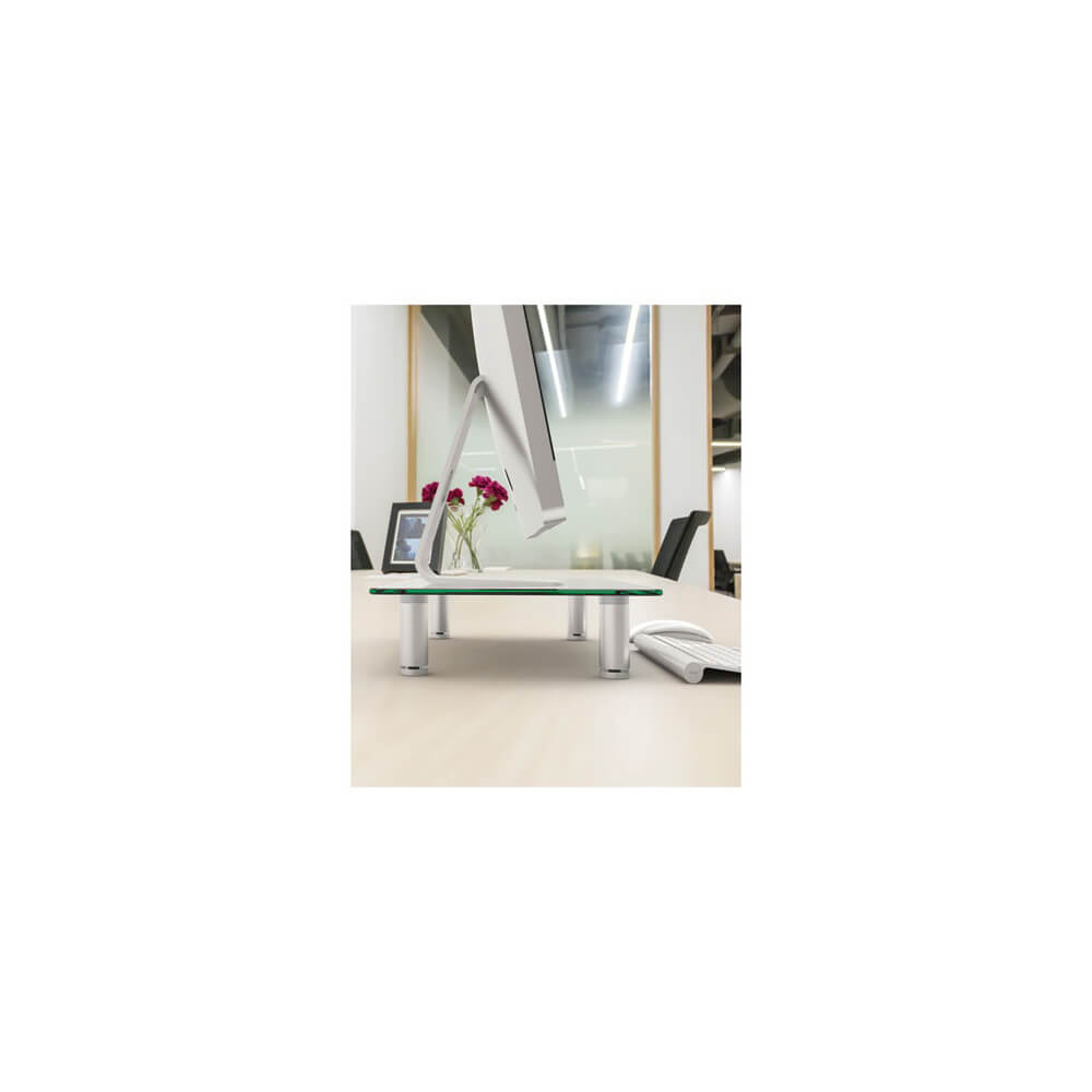 • Elevate your monitor to a proper eye position with this sleek looking tempered glass monitor riser.