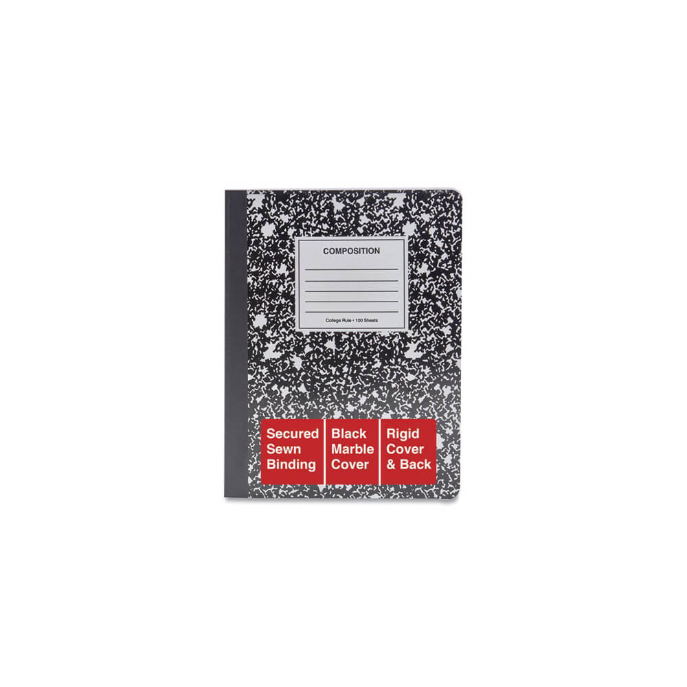 Composition Book, Medium/College Rule, Black Marble Cover, 9.75 x 7.5, 100 Sheets