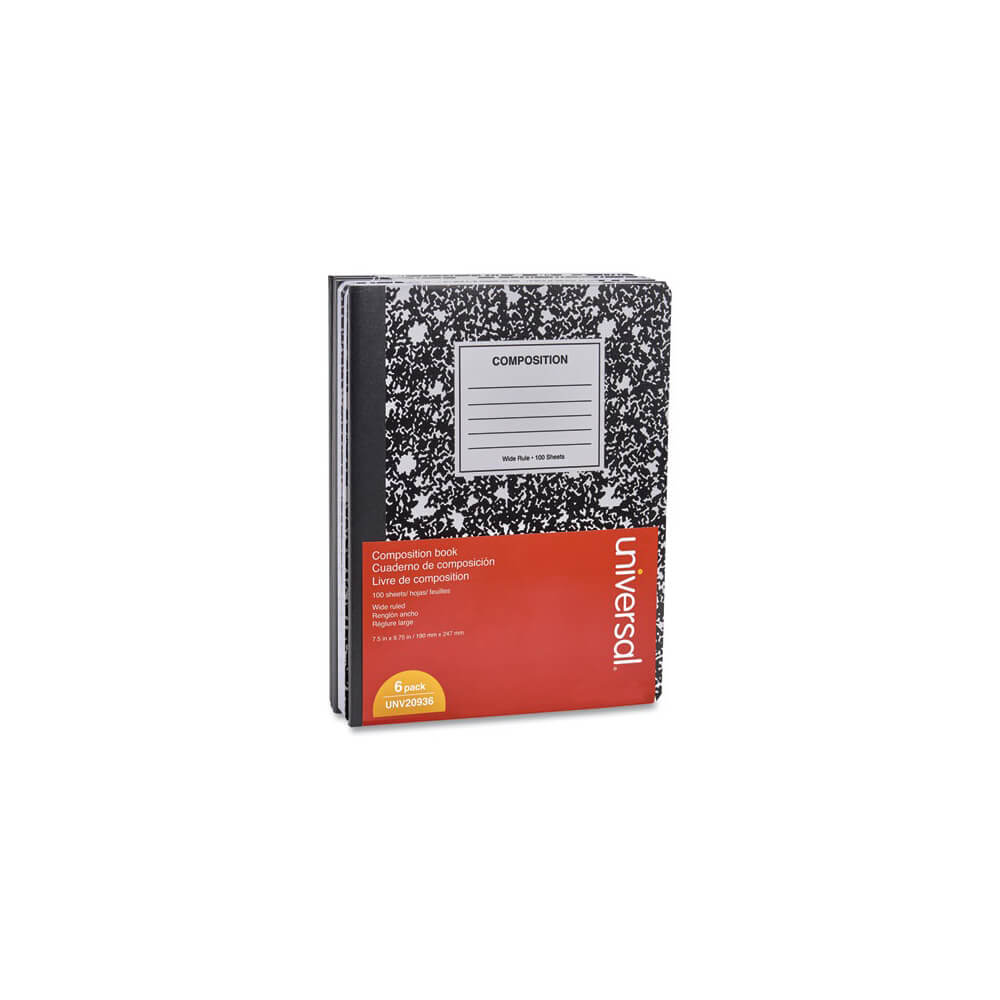 HomePaper & PrintableNotebooks & Journals Composition Book, Wide/Legal Rule, Black Marble Cover, 9.75 x 7.5, 100 Sheets, 6/Pack
