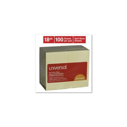 Self-Stick Note Pads, 3 x 5, Yellow, 100-Sheet, 18/Pack