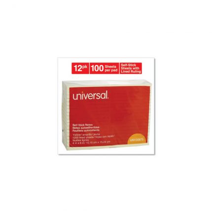 Self-Stick Note Pads, Lined, 4 x 6, Yellow, 100-Sheet, 12/Pack