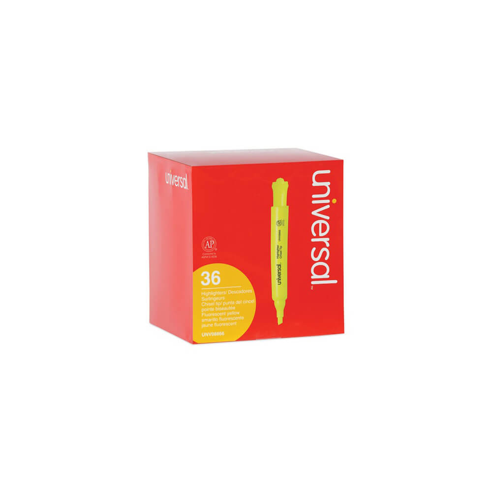 HomeWriting & Correction Supplies Desk Highlighter Value Pack, Fluorescent Yellow Ink, Chisel Tip, Yellow Barrel, 36/Pack