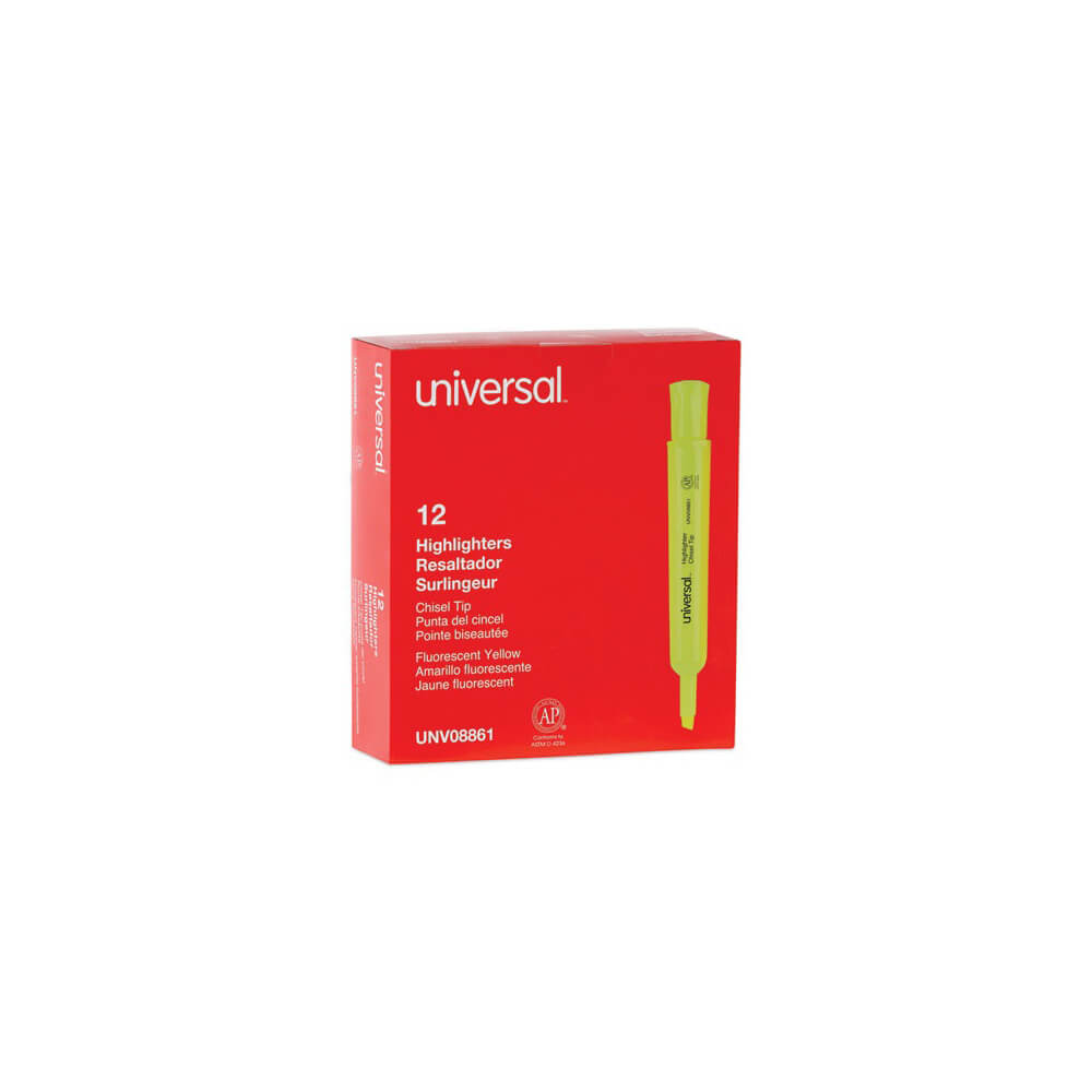 Universal™ Desk Highlighters are well-designed highlighting pens that feature bright, vibrant colors. The chisel tip allows for both broad and narrow lines. Large cap holds firmly on either end of the highlighter so it doesn’t get lost. The bright ink stands out on the page, dries quickly, and will not fade. Enjoy effortless highlighting with a smooth barrel that’s easy to hold.