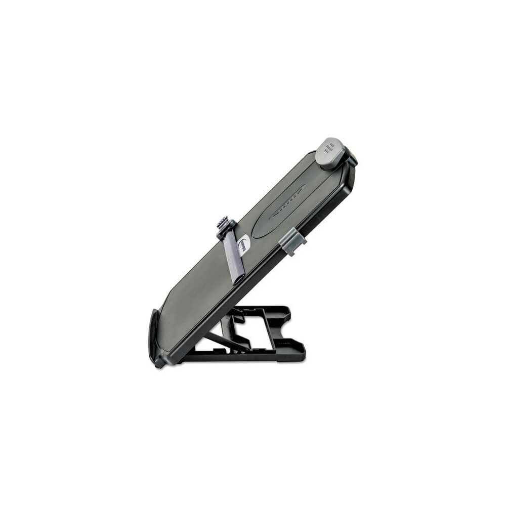 Holds both A4 and letter size documents. Four arm settings for optimal viewing. Grooved ledge and clips holds up to 25 sheets of paper. Includes removable see-through line guide and pen clip. Folds flat for easy storage.