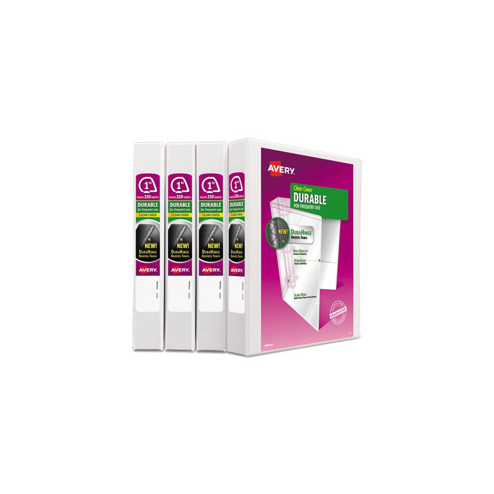 HomeBinders & Binding Supplies Durable View Binder with DuraHinge and Slant Rings, 3 Rings, 1″ Capacity, 11 x 8.5, White, 4/Pack