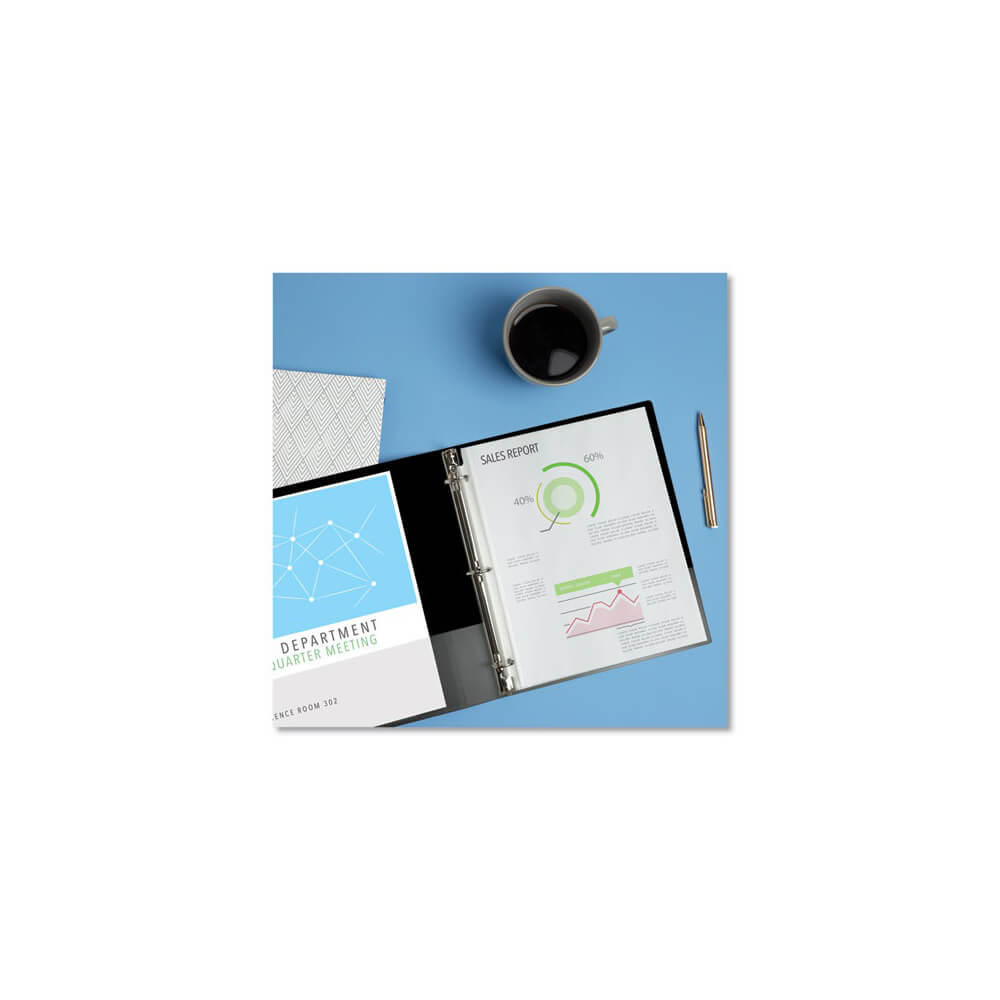 • Non-locking round rings hold 8 1/2″ x 11″ documents.