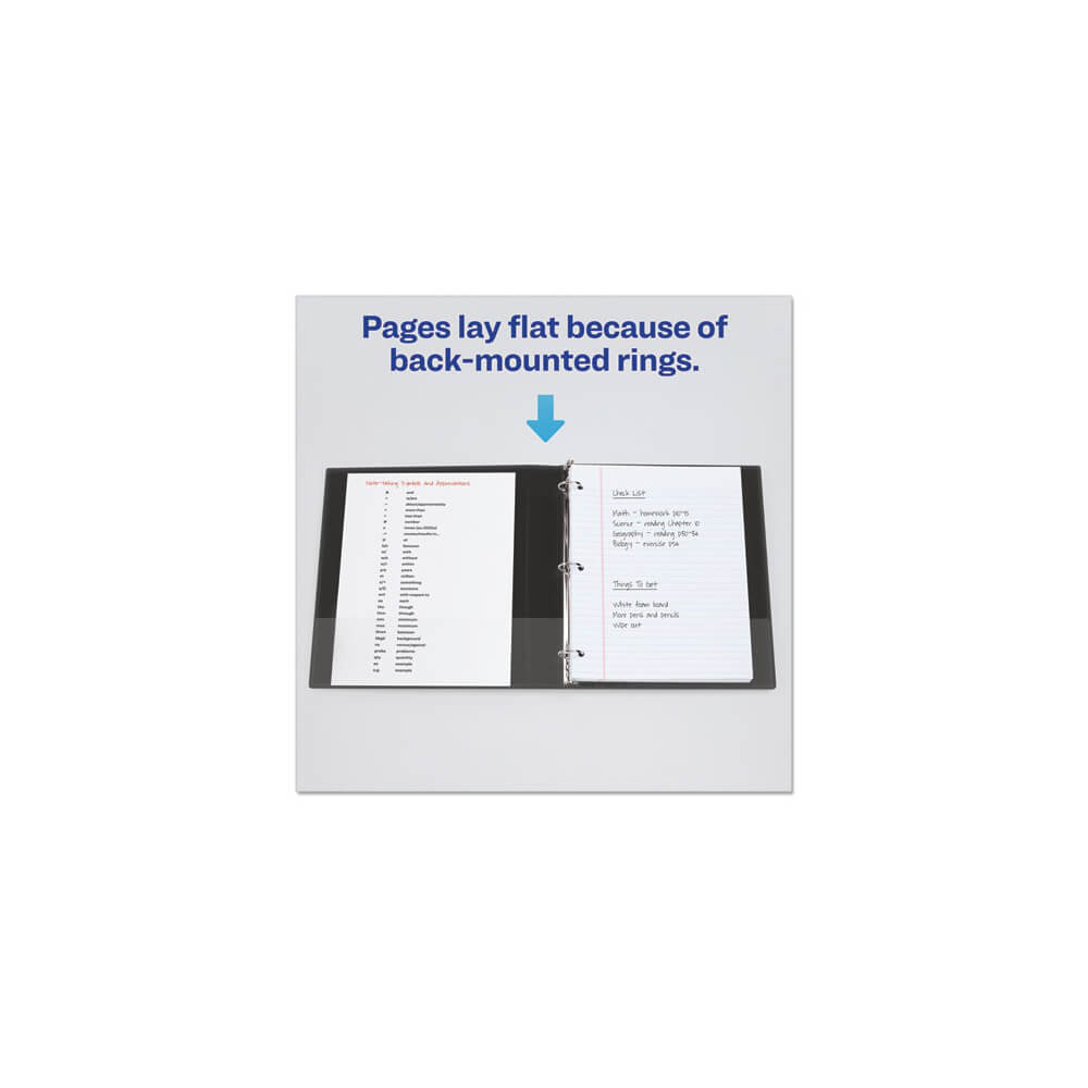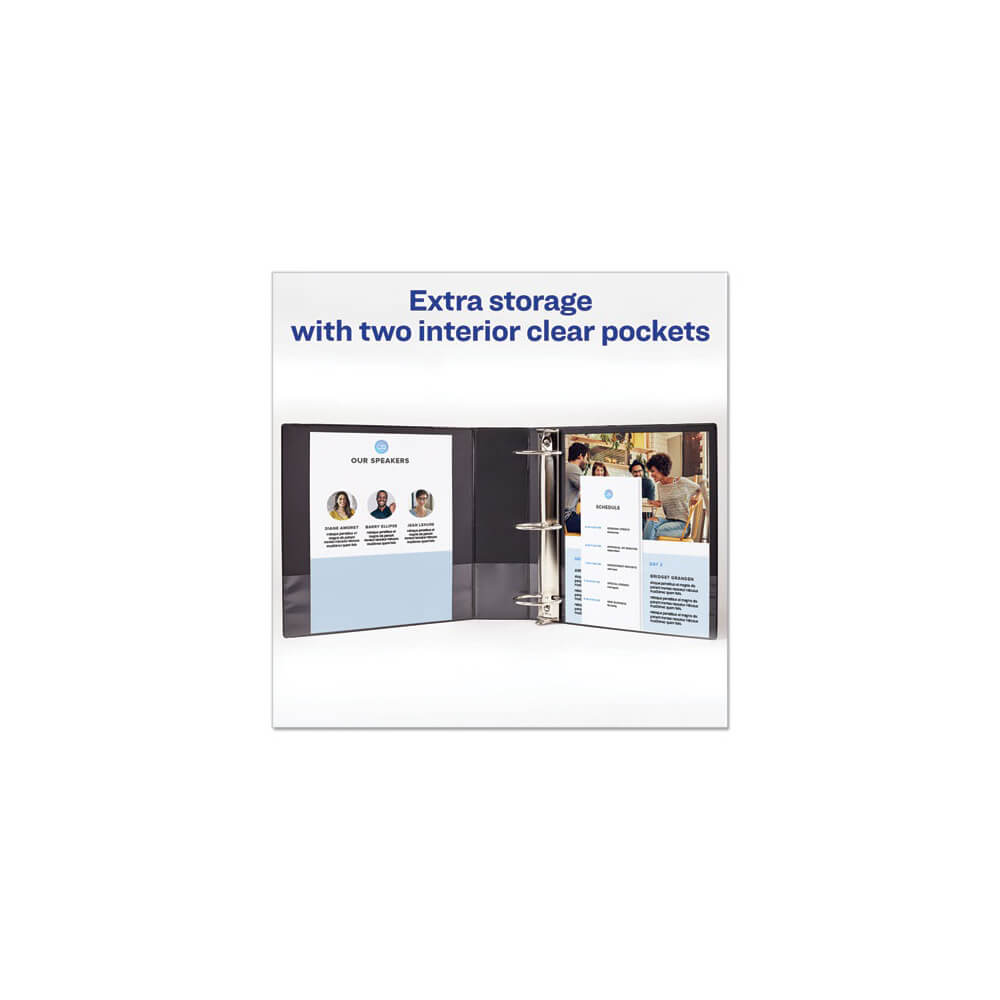 Perfect for light-use, this slim binder is a convenient and lightweight solution. Textured clear cover hides surface damage resulting from normal use. Put your personal stamp on the binder by designing a customized cover from Avery® Design & Print. Tuck important handouts, pamphlets and other loose or unpunched paperwork into the two interior pockets for quick access. Rings are either back-mounted for a clean spine and pages lie flat, or spine-mounted with concealed rivets – perfect for customizing front and back layers. It’s the friend your papers never knew they were missing.