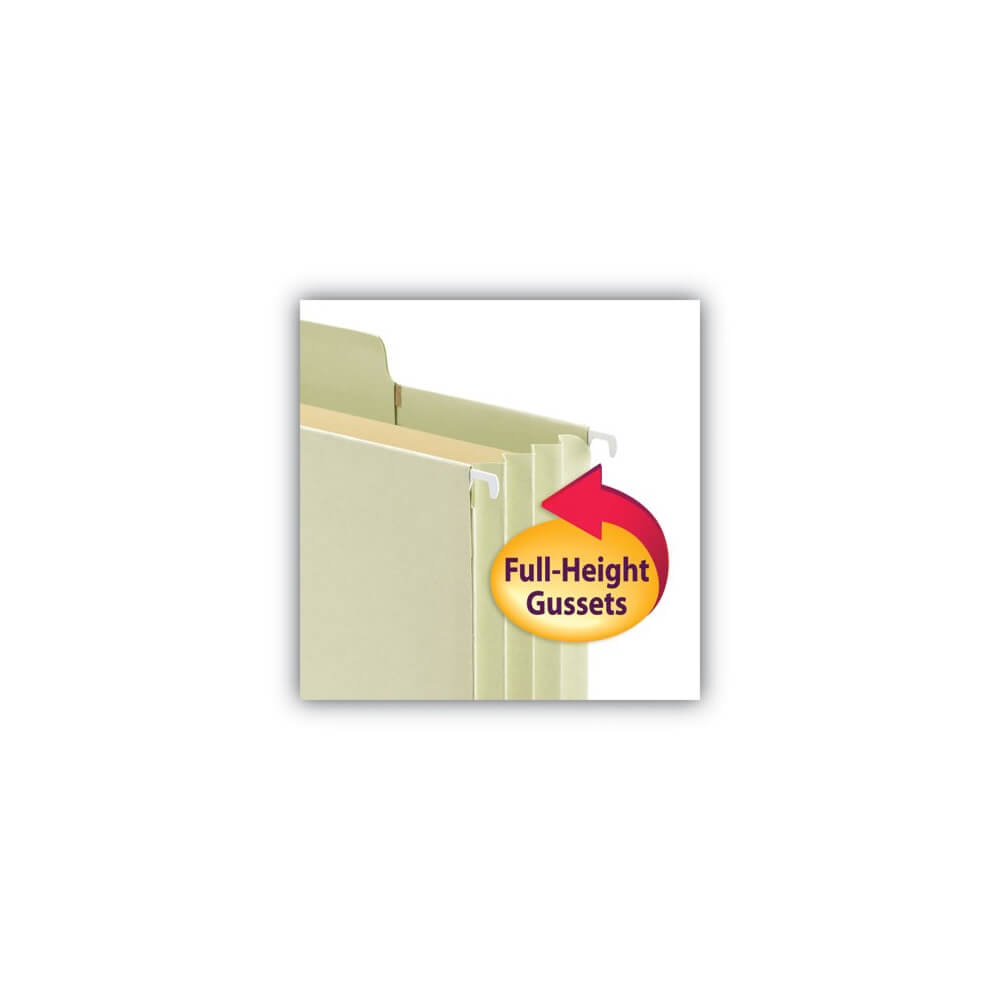 FasTab hanging pockets have built-in heavy-duty reinforced tabs permanently attached to the folder. No assembly is required. They are easy to label by either handwriting directly on the tab or applying self-adhesive labels. Extra capacity for storing bulky documents. Full-height sides secure small or loose items. Die cut handles allow for easy lifting and transporting. No plastic tabs required. Stronger than standard hanging pockets.