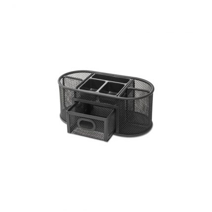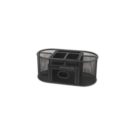 Metal Mesh Oval Desktop Organizer, 9 3/8 x 4 x 4 7/8, Black