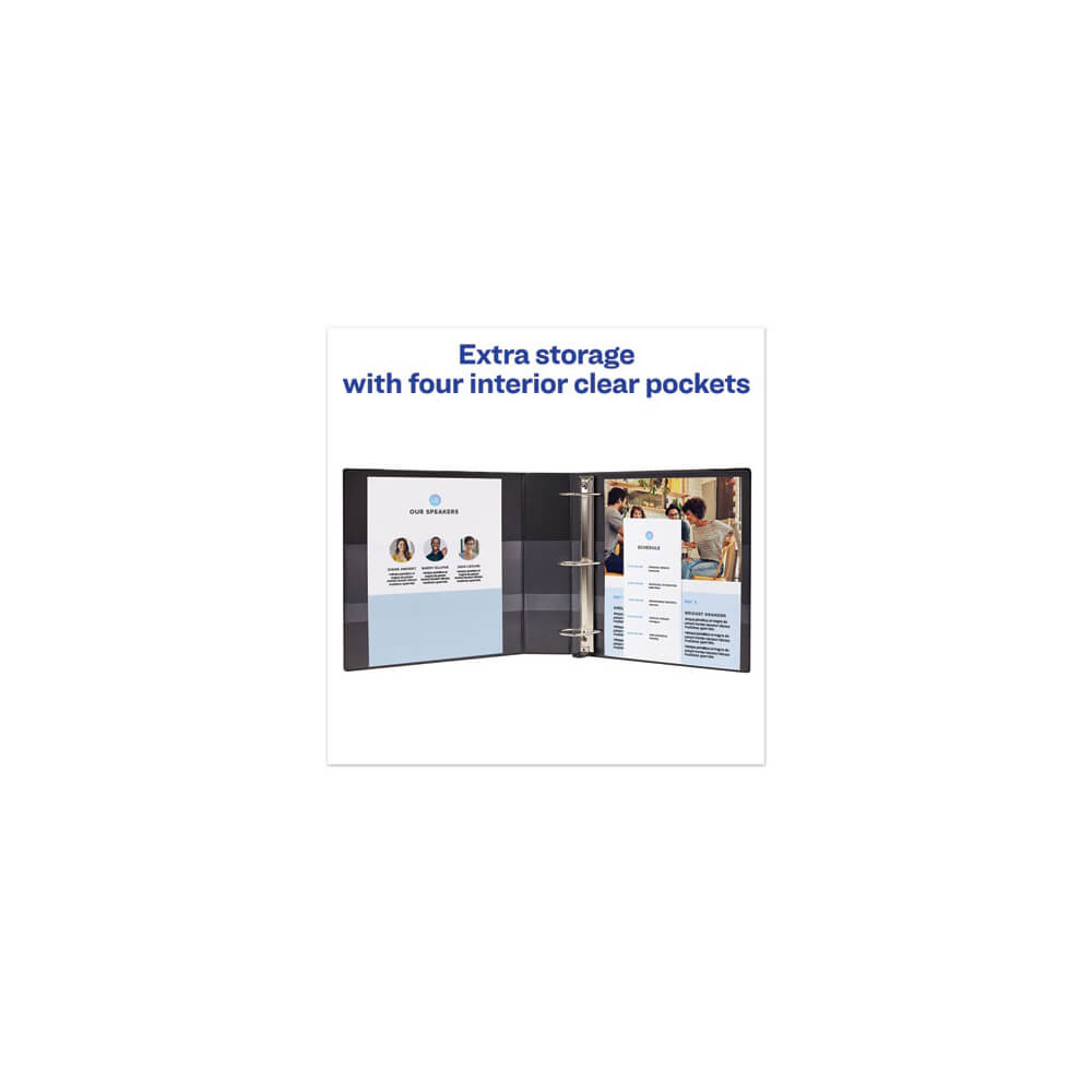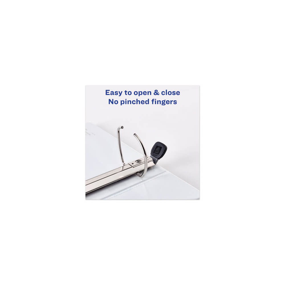Heavy-Duty view binder with one touch EZD® rings is perfect for long-term, regular use. Tear-resistant DuraHinge® design is stronger and lasts longer. DuraEdge® feature makes the sides and top more pliable, providing greater split resistance. Deep-textured film offers a smoother finish and features a linen pattern for a high-quality look and feel. Clear cover and spine for easy customization. Four clear, interior pockets provide extra storage space. Wider front and back panels fully cover standard dividers and sheet protectors. One touch EZD® rings provide easy access and have a higher page capacity when compared to the same size round rings. Customize the cover with free, easy-to-use templates and designs at Avery® Design & Print online.