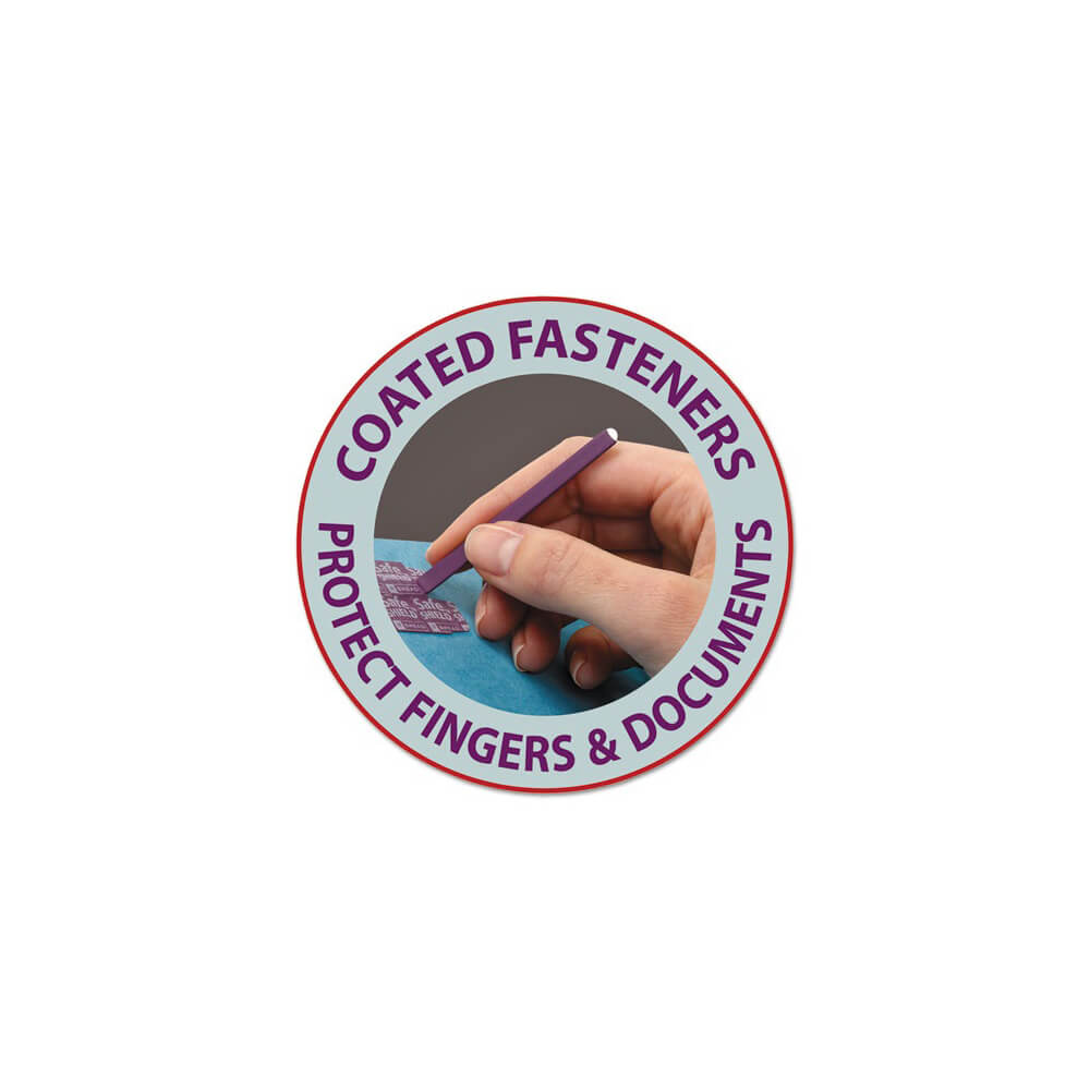 SafeSHIELD® bonded style coated fasteners are the ultimate solution to fastener issues, including paper tears, finger cuts and excessive fastener crinkling. Use fasteners to secure documents within the folder. Reinforced tabs for extra strength.