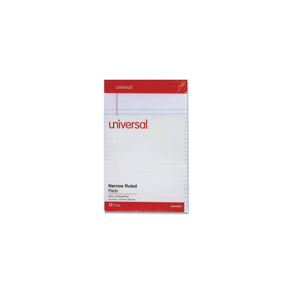 Perforated Ruled Writing Pads, Narrow Rule, Red Headband, 50 White 5 x 8 Sheets, Dozen