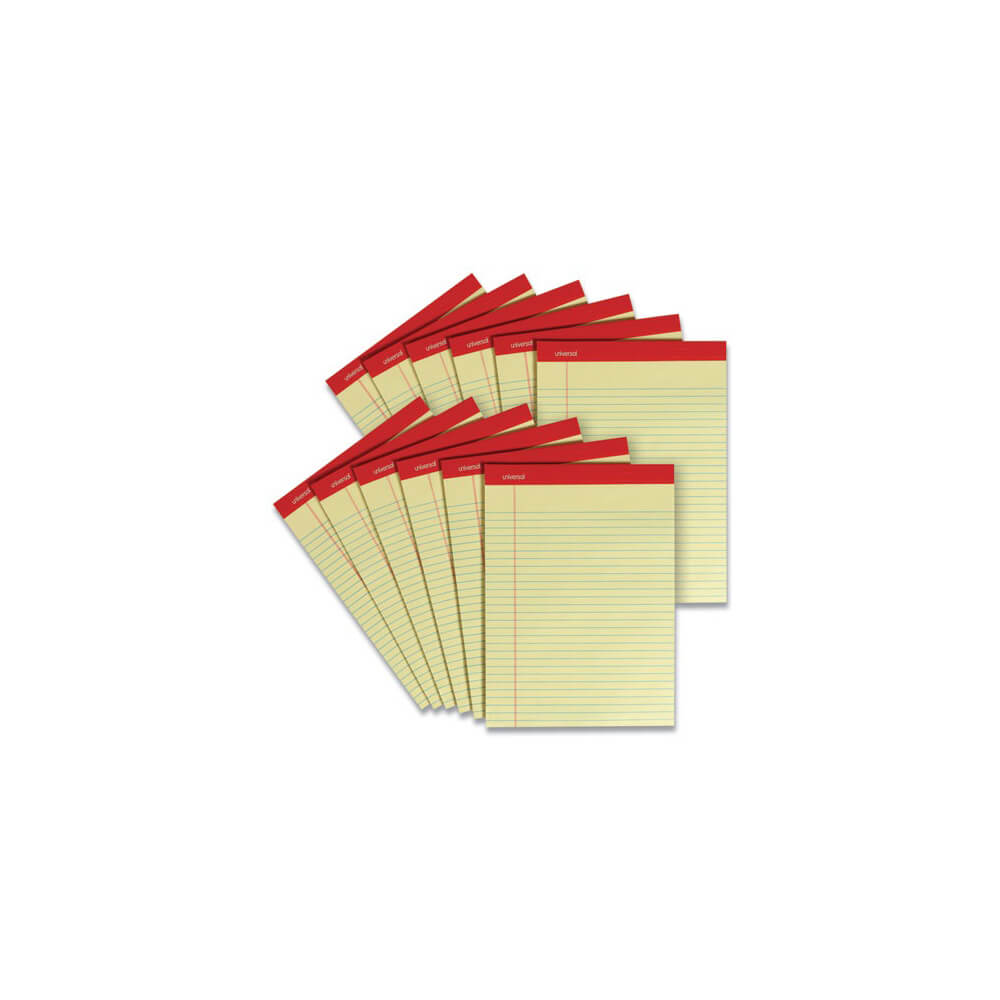 Perforated Ruled Writing Pads, Wide/Legal Rule, Red Headband, 50 Canary-Yellow 8.5 x 11.75 Sheets, Dozen
