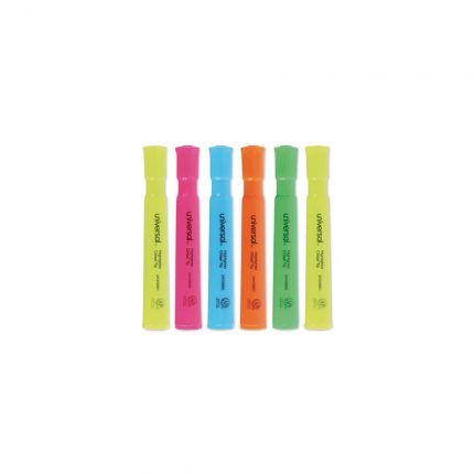 Universal™ Pocket Highlighters are well-designed highlighting pens that feature bright, vibrant colors. The chisel tip allows for both broad and narrow lines. Long cap with pocket clip holds firmly on either end of the highlighter so it doesn’t get lost. The bright ink stands out on the page and dries quickly. Enjoy effortless highlighting with a slender barrel that’s comfortable and easy to hold.