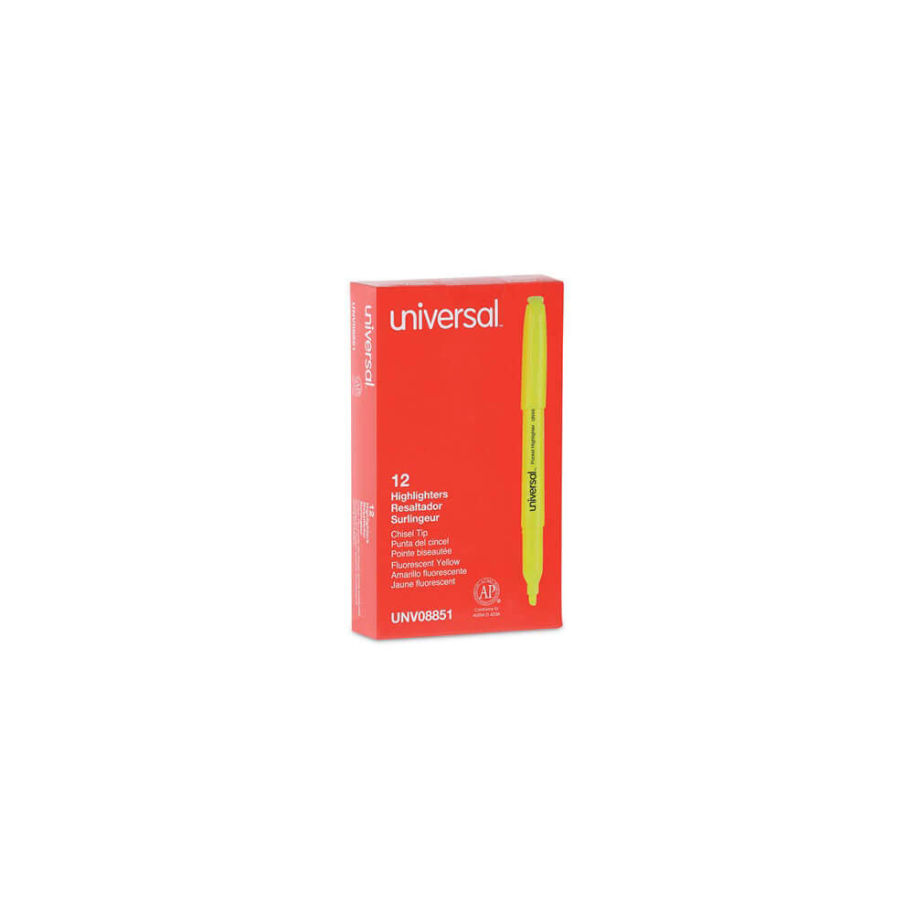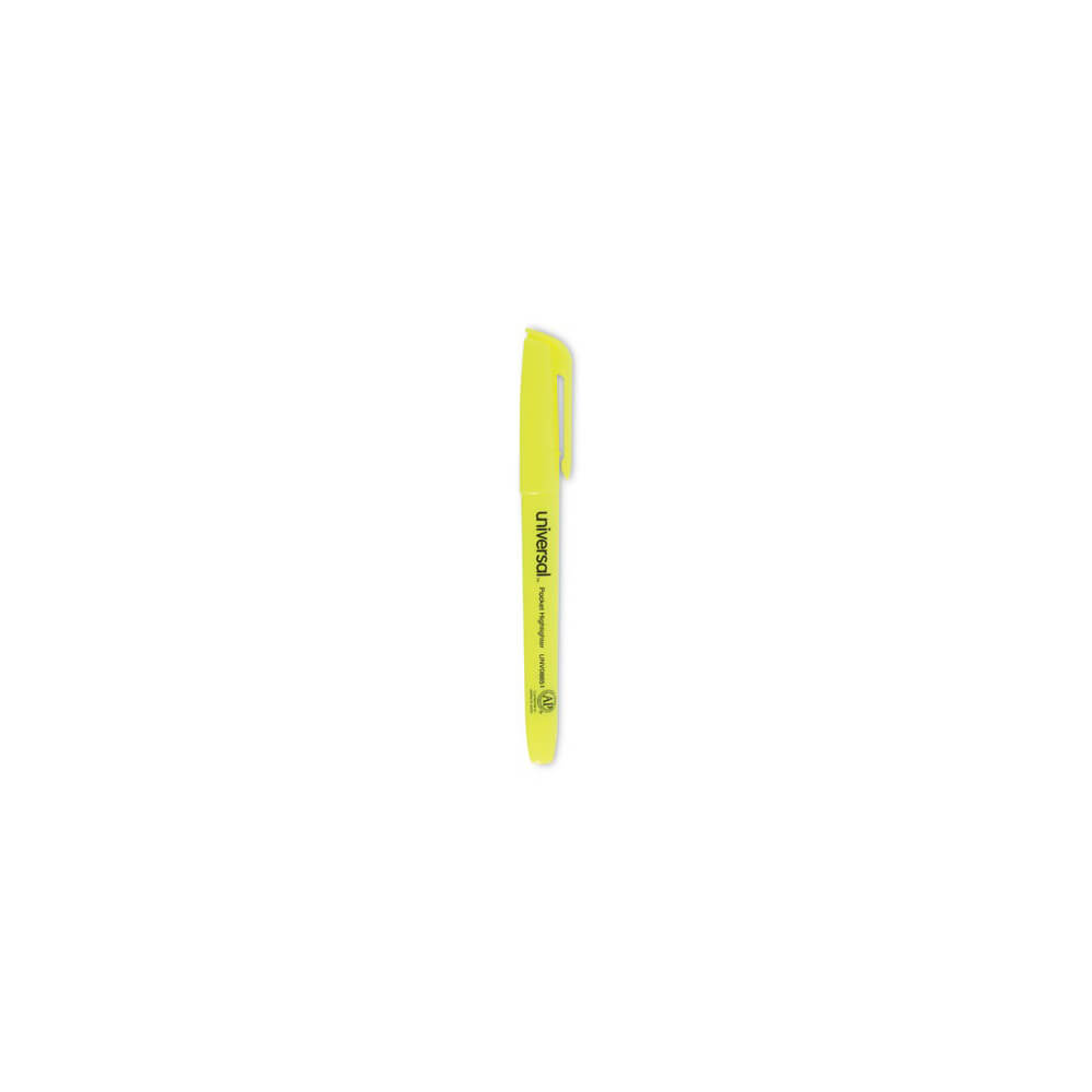 HomeWriting & Correction Supplies Pocket Highlighters, Fluorescent Yellow Ink, Chisel Tip, Yellow Barrel, Dozen