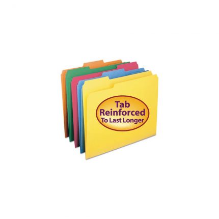Reinforced Top Tab Colored File Folders, 1/3-Cut Tabs, Letter Size, Assorted, 100/Box