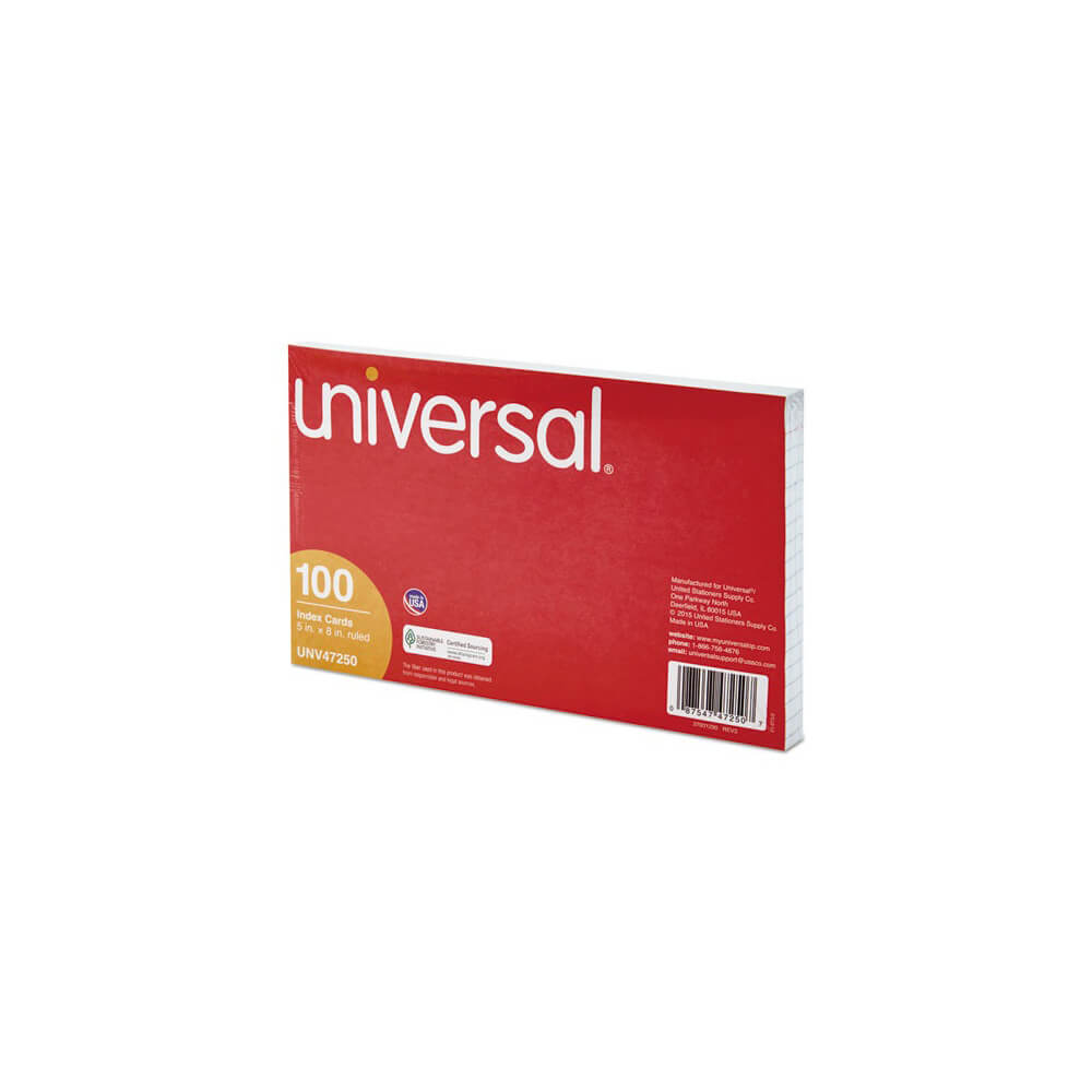 Ruled Index Cards, 5 x 8, White, 100/Pack