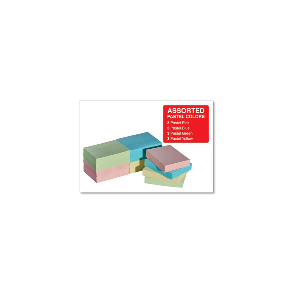 Self-Stick Note Pads, 1 1/2 x 2, Assorted Pastel Colors, 100-Sheet, 12/Pack