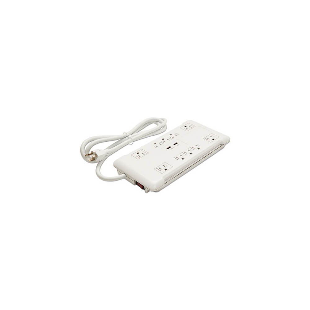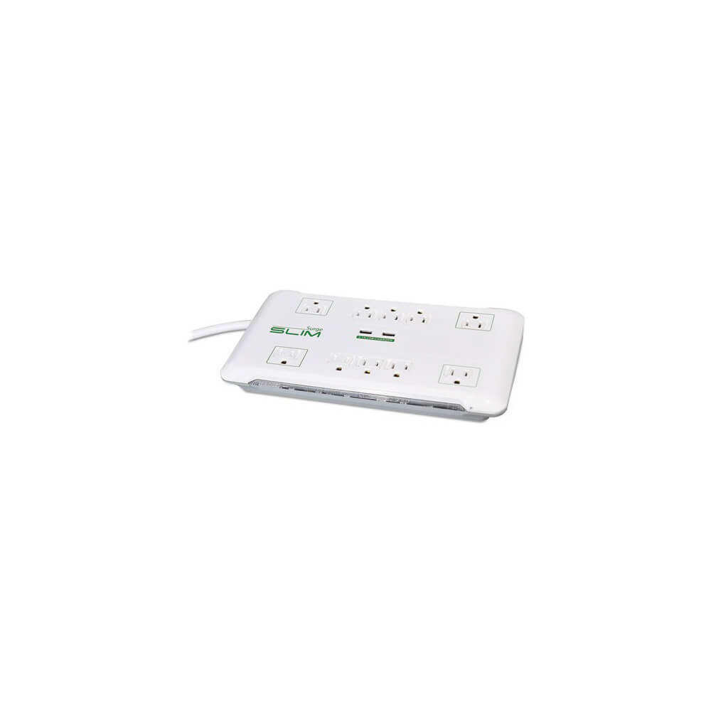 Slim Surge Protector, 10 Outlets/2 USB Charging Ports, 6 ft Cord, 2880 J, White
