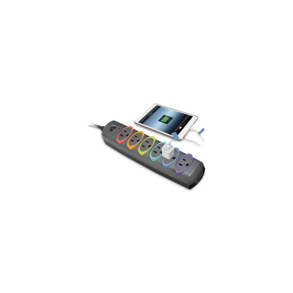 SmartSockets Color-Coded Strip Surge Protector, 6 Outlets, 7 ft Cord, 945 Joules