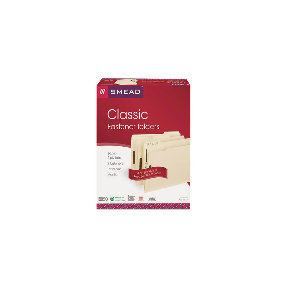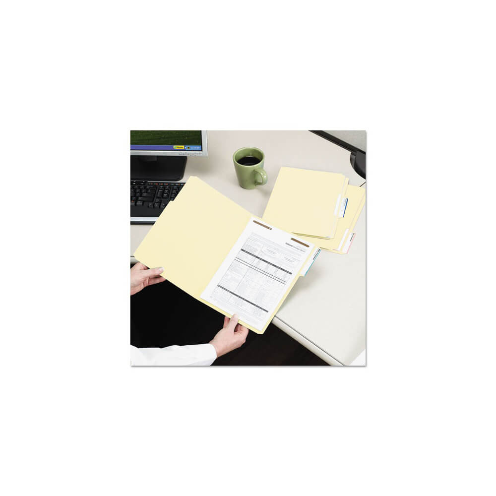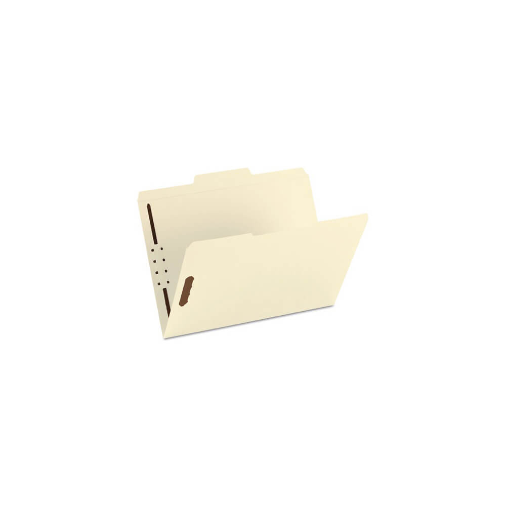 Manila 2-Fastener Folders with Two SafeSHIELD Coated Fasteners, 1/3-Cut Tabs, Letter Size, 50/Box