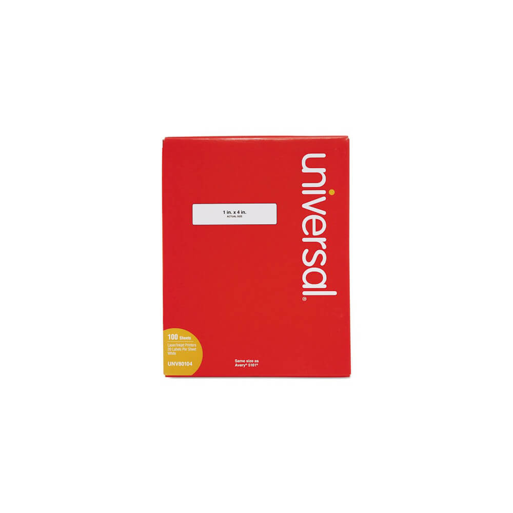 White Labels, Inkjet/Laser Printers, 1 x 4, White, 20/Sheet, 100 Sheets/Box